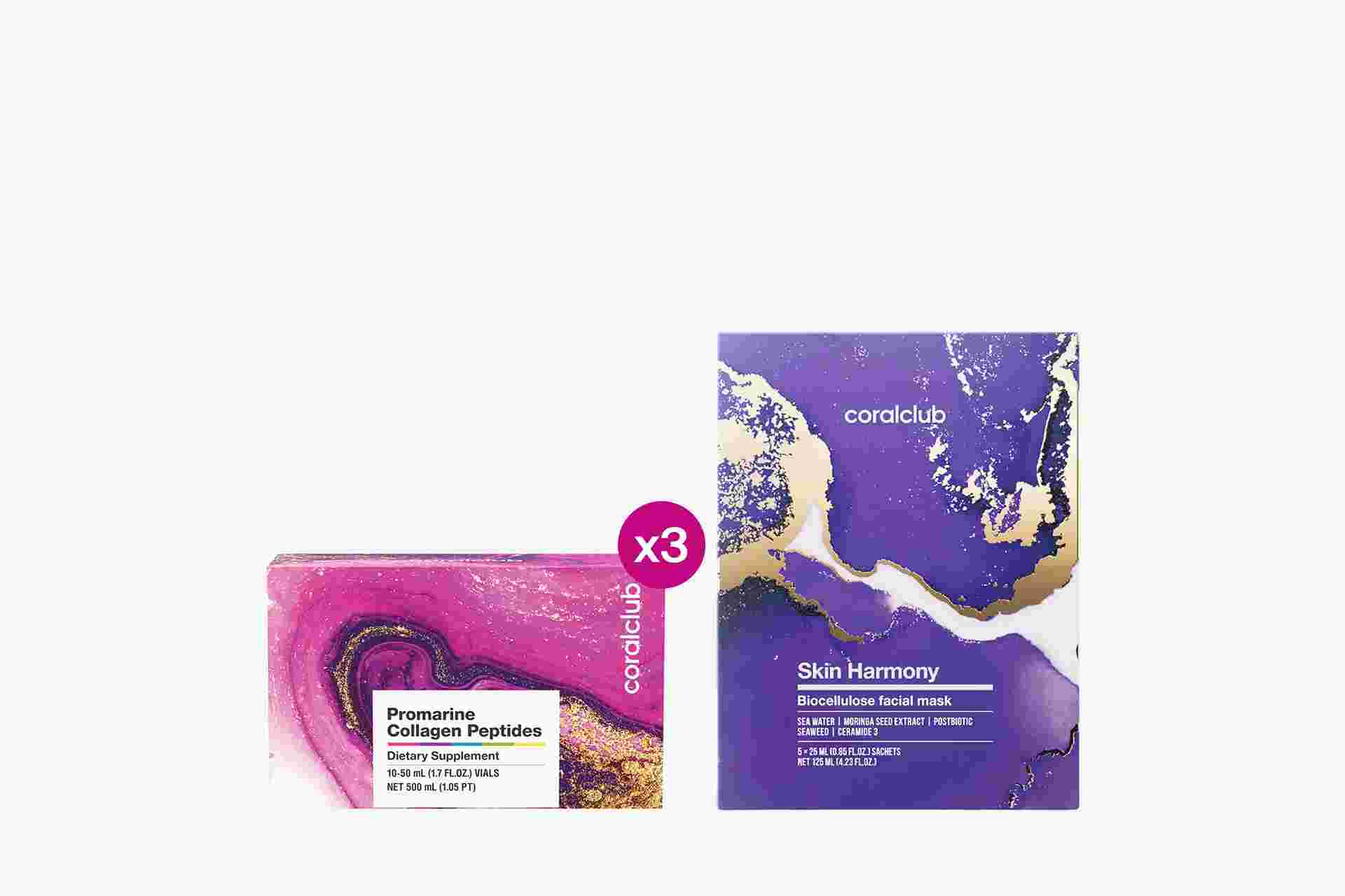 Promarin Collagen Peptides Set (1-month course) & Bio-cellulose Face Masks Skin Harmony (5 sachets)